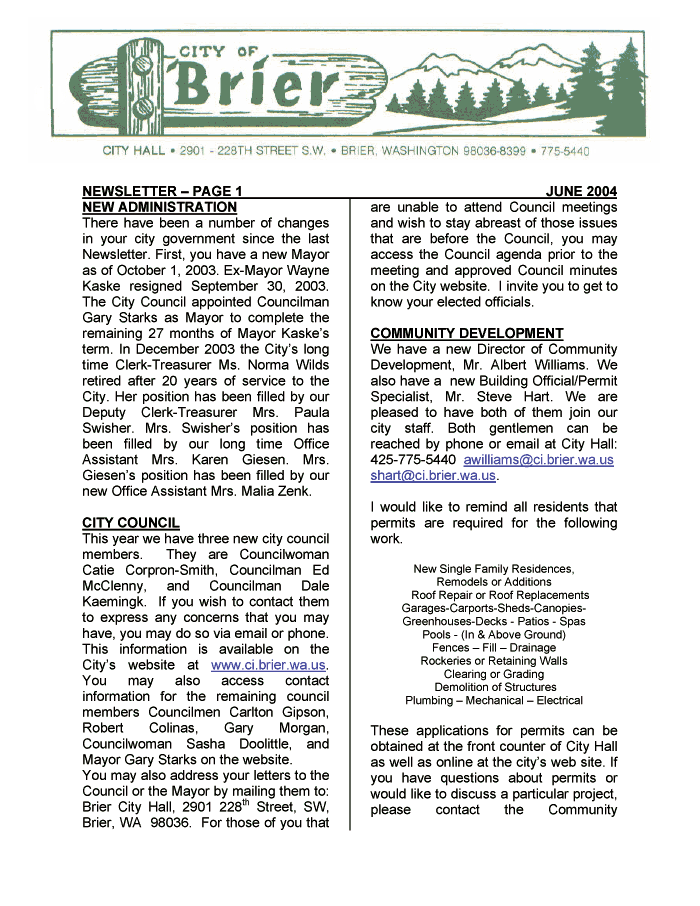 Brier City Hall - 2901 228th St. SW - Brier, Washington 98036